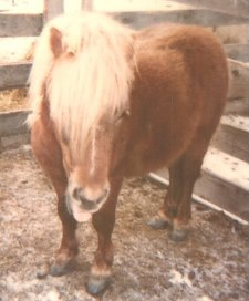 This is a picture of Mark with his Dad and Grandma. Mark has cerebral palsey and is usually confined to a wheelchair, but for this picture, he got to sit on his new "personal" pony, MAGGIE. We think this story is extra special because it is also a story about a little mare that was saved from certain death because of the skill and generosity of PPL Volunteer, Gail Schumann (see MAGGIE's story below). Thanks to Gail, and MAGGIE's stamina and courage, Mark, MAGGIE and her companion goats, BUTTONS and BOWS, are all best friends.